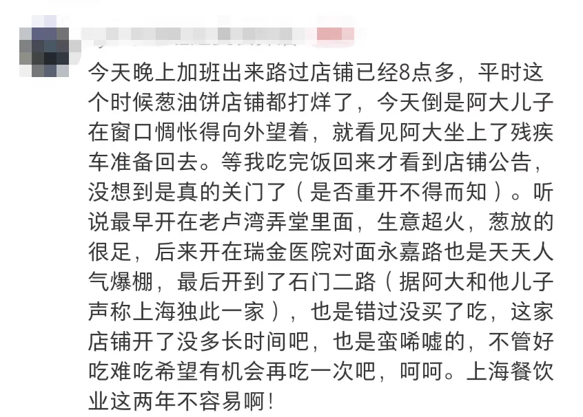 停业多年的“阿大葱油饼”在石路途上开出新店激勉不少关怀