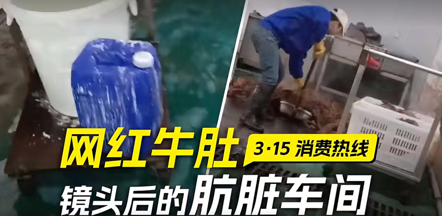 3月14日,中国食物报融媒体发布《网红牛肚 镜头后的龌龊车间》,直指网上一款被千万粉丝网红带货的“贡菜+千层肚”居品分娩环境脏、乱、差。