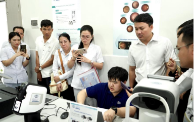 视觉健康智能管理中心(VIMC)作为视觉健康服务“上海模式”的生动实践,以智慧化、标准化、一站式服务为核心,通过人工智能、物联网、大数据等新兴技术赋能,聚焦人群高发和常见眼病,强化早期干预,实施动态连续的视觉健康分级分类管理。在柬埔寨Kampong Speu省Kong Pisey医院和Kandal省Techo Sen Koh Thom医院,两家VIMC仅用一周时间完成从建设到试运行的全过程,展现出视觉健康服务的“上海速度”。