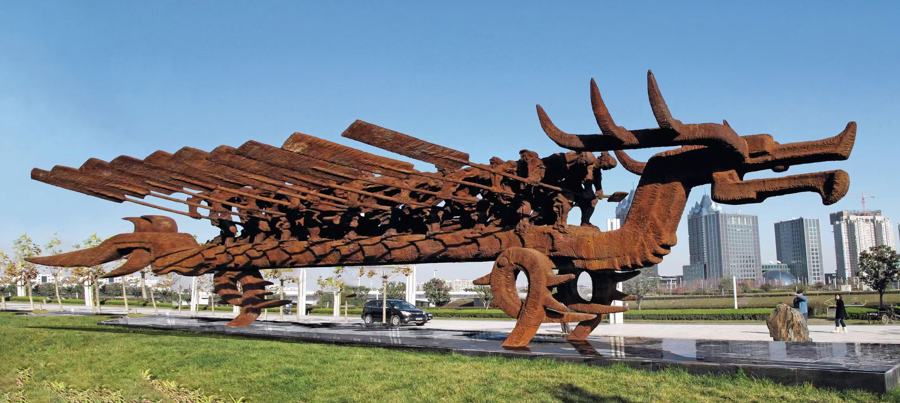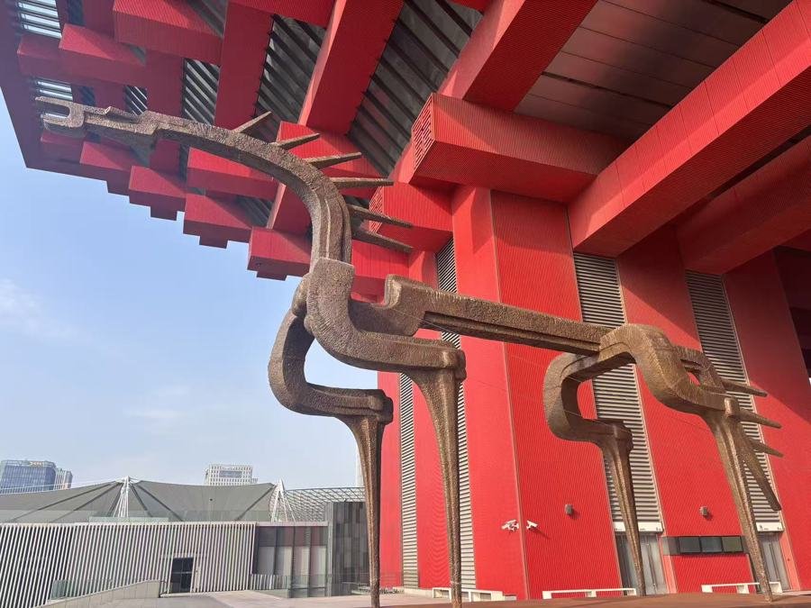 马年即将到来之际,上海美术馆(中华艺术宫)户外广场,一组大型雕塑迎光矗立。其中,《龙马》兼具商周青铜夔龙纹饰之遒劲与现代极简线条之流畅,描绘出马儿昂首腾空、四蹄激浪的形态。作品以“龙马精神”为立意,引领观众走进曾成钢的雕塑艺术宇宙。