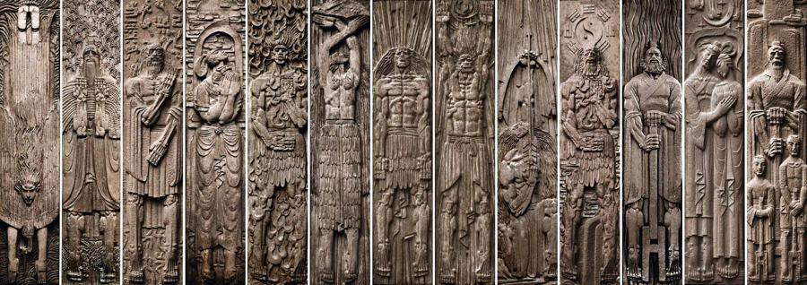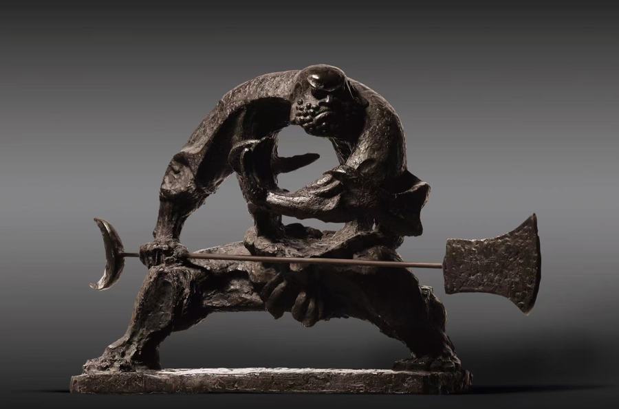执行策展人马琳阐释,“《中国神话故事》浮雕采用青铜器特有的古拙线性语言,线条简括而充满内力,人物与故事被提炼为极具象征性的图式,在大开大合间形成凝重的视觉节奏。”策展人冀少峰认为,曾成钢的雕塑散发出一种纪念碑性、永恒性的力量,具有昂扬奋进、气势如虹的英雄气概,展现出他对历史的深度思考与反思。