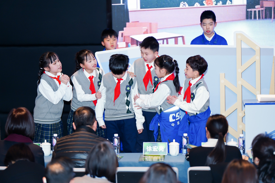脱口秀的温情之外,各校深耕“双新”的特色实践,更藏着素养育人的巧思与坚守。沪新小学以校园戏剧为纽带,构建起“课程—课后—评价”一体化育人体系:《团团圆圆过大年》音乐剧串联起语文台词打磨、音乐配曲填词、美术道具制作等多学科内容,让课堂学习充满烟火气;联合上海戏剧学院打造的原创剧《解救吾同学》,深挖船厂本土资源,让学生在排演中体悟工匠精神、厚植家国情怀。学校还设立特色奖项,通过集团平台展示学生成长,让合作、创意等无形素养变得可感可评。