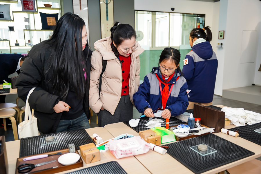 前不久,竹园小学张杨校区二楼的中庭,“变身”成为“竹园第20250108号窟”,在这里,朱燕凡老师和学生变身成为敦煌小工匠,创造了四个“瑞兽”形象,分别是翼马、白象、青鸟和守宝龙。