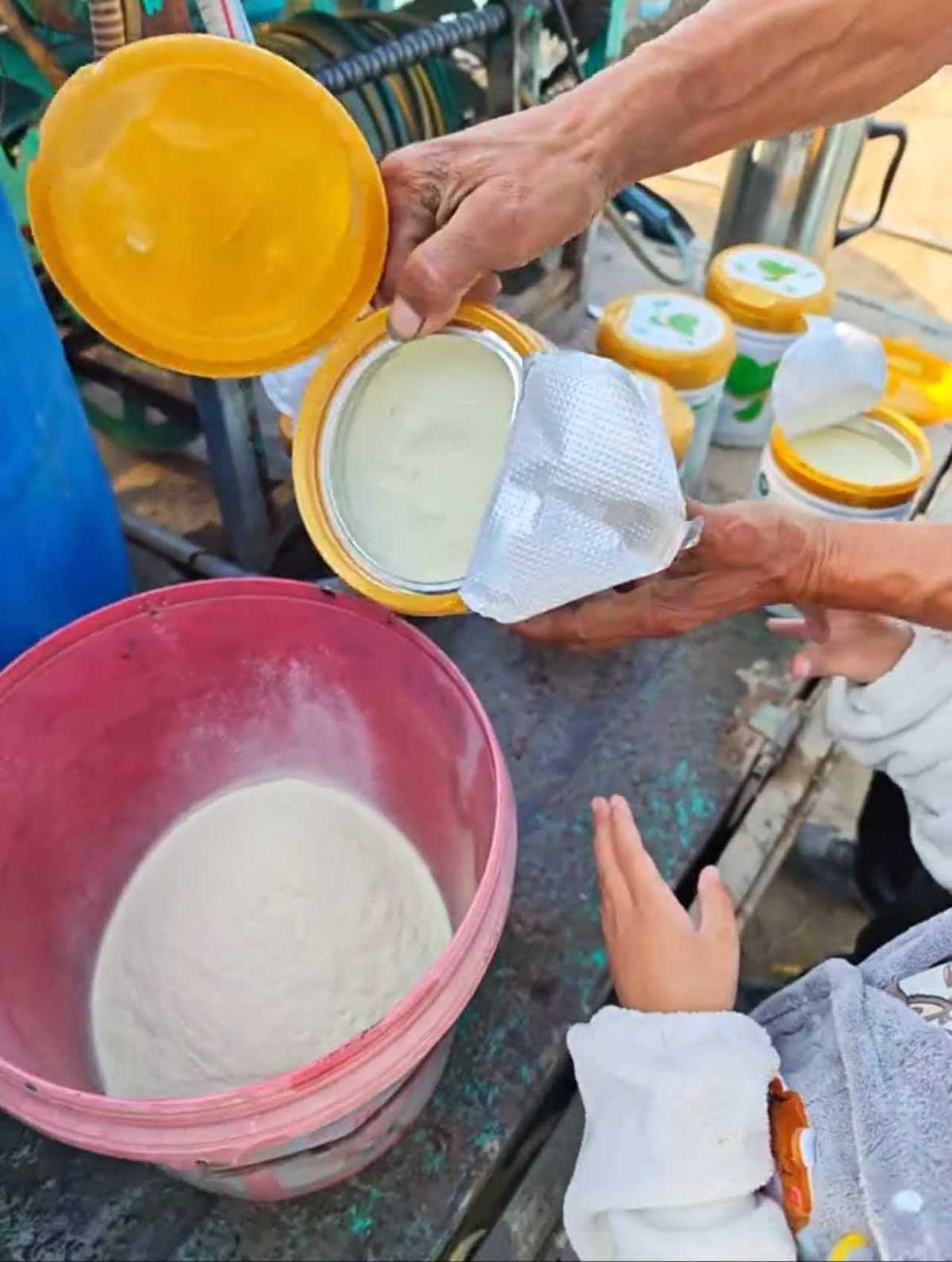 张女士先容,她每次从养牛场径直购买200元的鲜牛奶,一斤3元傍边,按照一定的比例和红糖、发酵剂搀杂后,放在桶里发酵15天,把它放进蓄池塘里,稀释后自动浇灌进泥土里即可。“牛奶不成径直浇灌,需要经过发酵。每个月浇灌一次,浇灌后的草莓口感会更好,也能改善泥土。”张女士说。