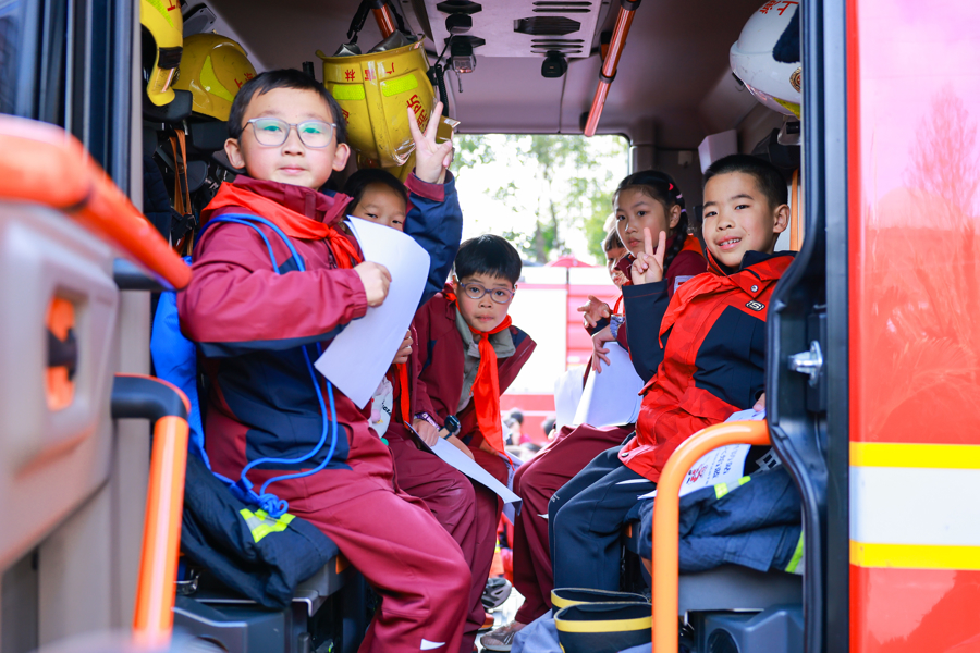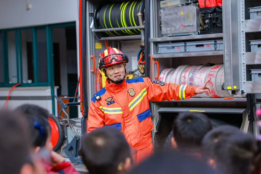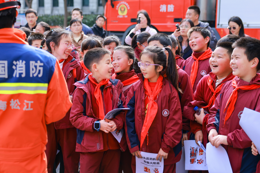 日前,华东政法大学附属松江践诺学校的学生走进广富林消防救援站,开启一场千里浸式消防安全主题研学活动。