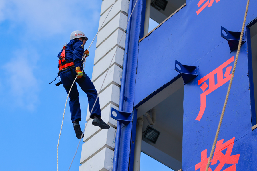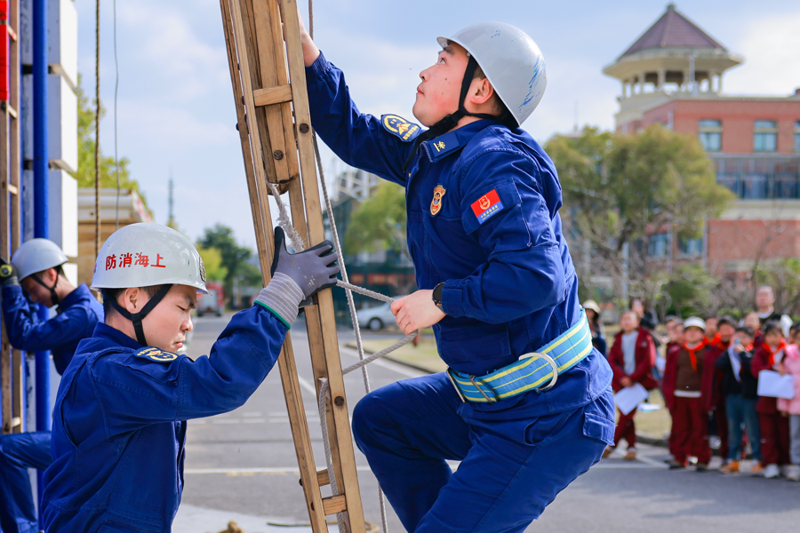 消防员在检修场上开展的登高救援科目检修更是让学子眼界掀开:短短数秒,消防员飞快架梯,徒手登攀至几层楼高的检修塔,再借助绳子稳稳降至大地。
