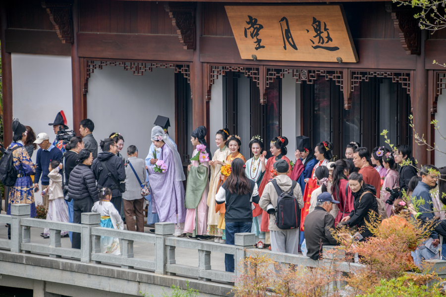 当日11时,十二花神巡游入园四肢准时登场,嘉汇优配以传统“簪花迎春”之礼,认真启幕本届花朝嘉会。十二位身着对应花神衣饰的饰演者引颈游东谈主散步春园,周折的巡游戎行穿梭在亭台楼阁间,园林雅境、盛装东谈主物、烂漫春色与隆重典礼和洽呼应,勾画出一幅鲜嫩的春日古风图景。四肢现场,搭客还可体验花神簪花,将一枝带着春天气味的花枝缀于发间,入园即逢春,每一步都是盎然花事。