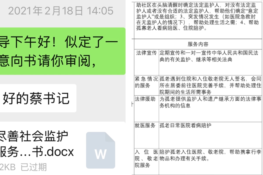2021年,《民法典》持重实行,明确了成年东说念主不错书面式样确定监护东说念主,初次将“组织”纳入监护东说念主范围。这让许多下层责任者看到了但愿。