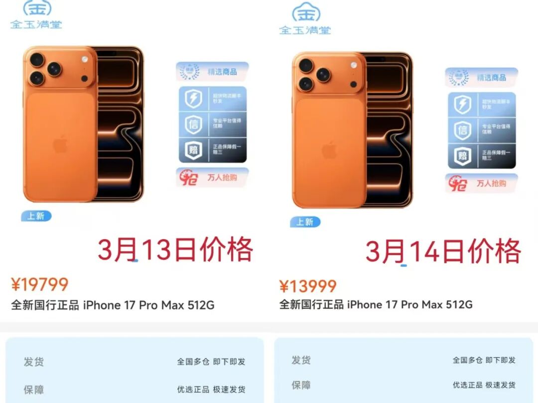 3月14日,金玉满堂修改商城内商品价钱,并下架“先享后付”功能。
