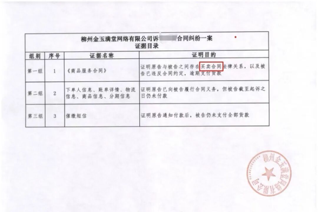 金玉满堂提交的根据目次炫耀,其与孙乐签署的合同为买卖合同。 受访者供图