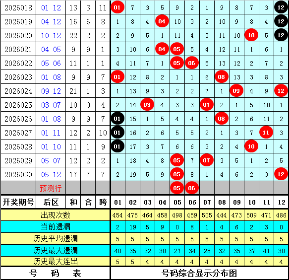 其中,后区奇偶比为19:21,大小比为17:23,012路比为10:18:12,本期后区金胆参考05。